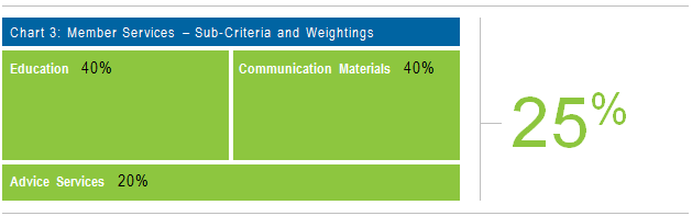 While investments carry the highest weighting in our ratings process, we believe member services are also vitally important. For that reason, they account for 25% of our overall weighting.