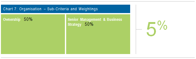 When we assess a fund on organisation, we look at who owns or controls it, the strength of its management team and its strategy for the future, as shown in