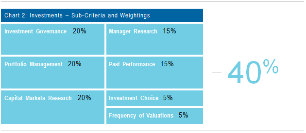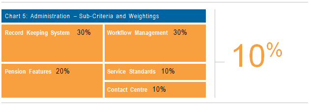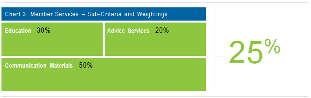 While investments carry the highest weighting in our ratings process, we believe member services are also vitally important for pension members. For that reason they account for 25% of our overall weighting.