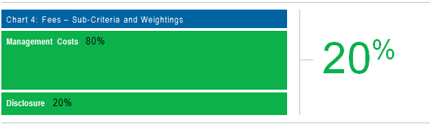 We determine a score for each of the main criteria and then weight these to provide an overall rating for the fund.