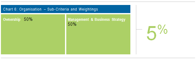 When we assess a fund on organisation, we look at who owns or controls it, the strength of its management team and its strategy for the future, as shown in
